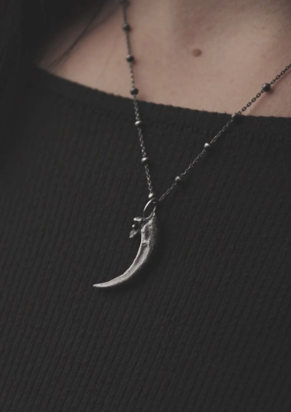 Cast from a single raven talon, the Forni Pendant is a symbol of precision, insight, and shadowed strength. Inspired by Celtic and Norse mythology, it draws on the raven’s ancient role as protector, guide, and seer between worlds.